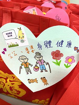 為培養幼兒關心他人、服務社群的精神。家教會一年一度的「親子探訪安老院」活動,因疫情的關係,改為由教職員及家教會家長委員,於2021年2月5日,向安貧小姊妹會聖瑪利安老院之院友送贈「福袋」,並掛上幼兒設計的心意卡。祈望長者能於春節期間,感受到寶血幼稚園師生及家長的暖意,共享節日的溫馨氣氛。
