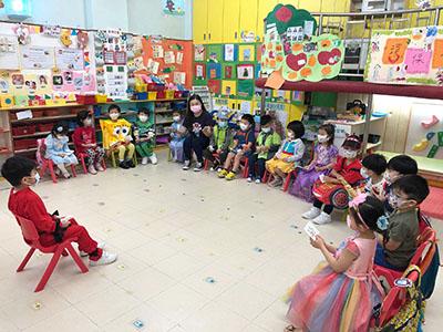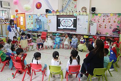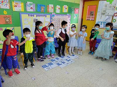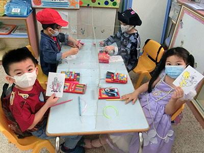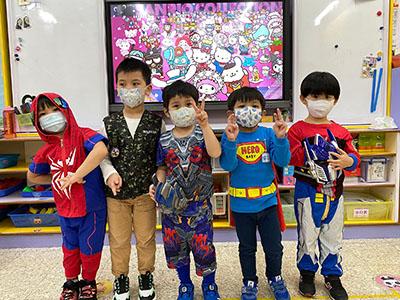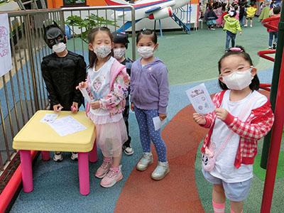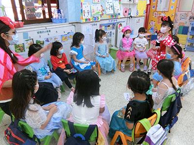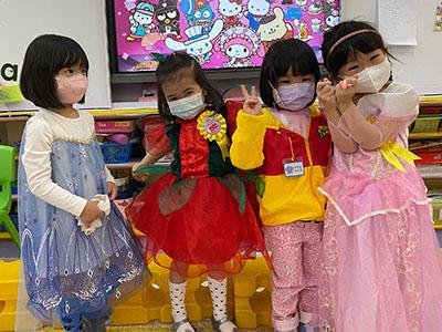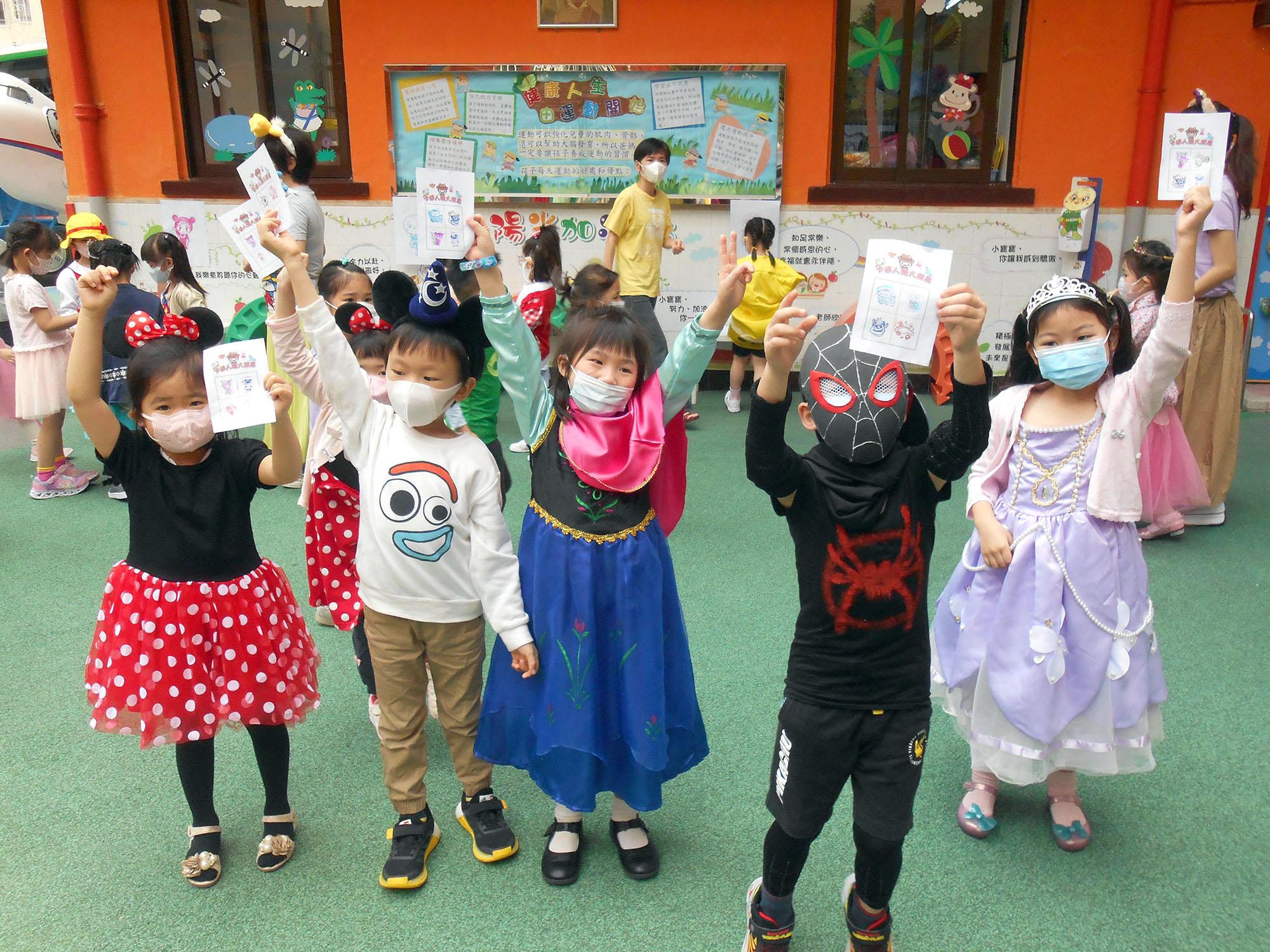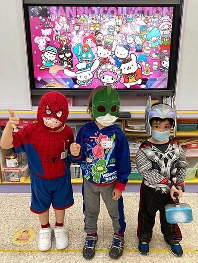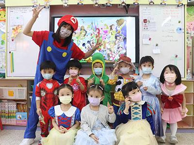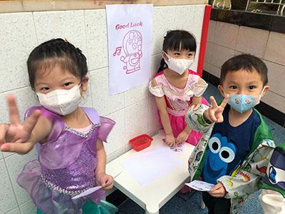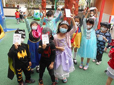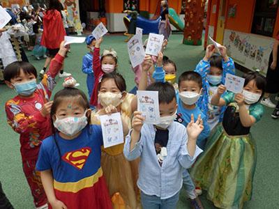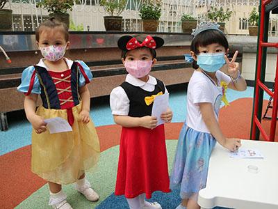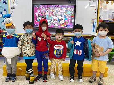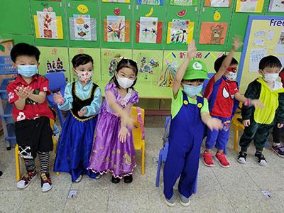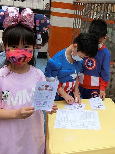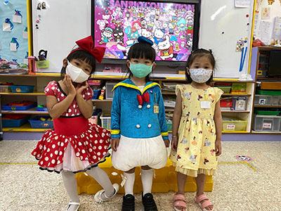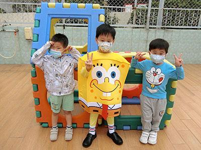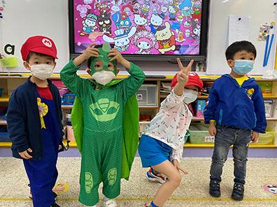 幼兒除了互相欣賞和展示自己的裝扮外,他們更參與了一連串精彩的遊戲,例如到操場進行「卡通人物大搜尋」活動,於限時內搜尋指定的卡通人物圖案,過程緊張刺激,幼兒更運用卡通人物的特徵進行大風吹遊戲,隨後老師亦帶領幼兒一起猜猜不同卡通片的主題曲,讓他們動動腦筋思考!最後一起欣賞由一群老師聲音演繹的卡通短劇,共同渡過了美好愉快的一天!