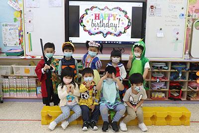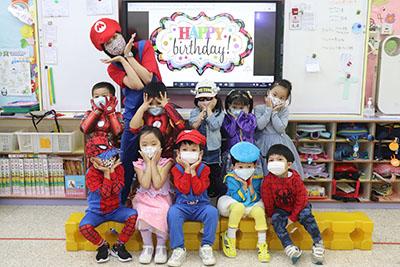 本校於二零二一年三月二十九日(星期一)舉行了「卡通人物大派對生日會」,為十一月至四月份生日的小朋友慶祝。當日整個校園也充滿童趣,無論老師或小朋友都特意穿著不同的裝束或配戴特別的飾物,打扮成自己喜愛的卡通人物,造型生動有趣,師生們歡歡喜喜地參與這一場特別又難忘的生日盛會!