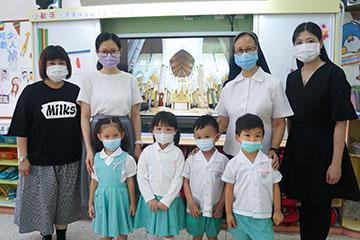 甘修女、馬副校長和主任更頒發聖牌給已領洗的幼兒,提醒幼兒是基督徒的身份,活出愛人如己的精神。